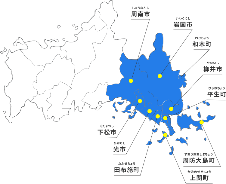 カグリエは山口県東部エリア(周南市/下松市/光市/田布施町/平生町/上関町/周防大島町/柳井市/岩国市/和木町)にて