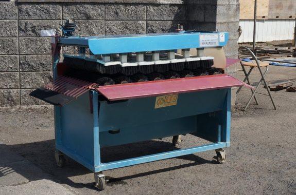 回転ブラシと上押しブラシの間に大根を連続的に通して洗浄するものです。ブラシは独立して、上下に動きますから先端までもれなく洗えます。追洗いが不要の良品です。お客様にご納得いただく査定額を付けさせていただきました。